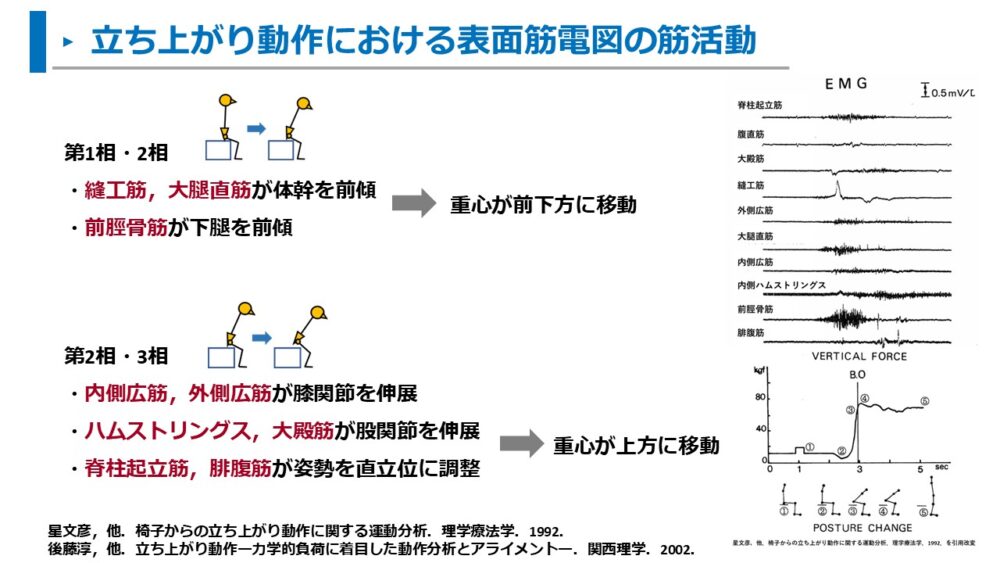また、論文をもとに立ち上がり動作時の関節可動域や筋活動も紹介します。