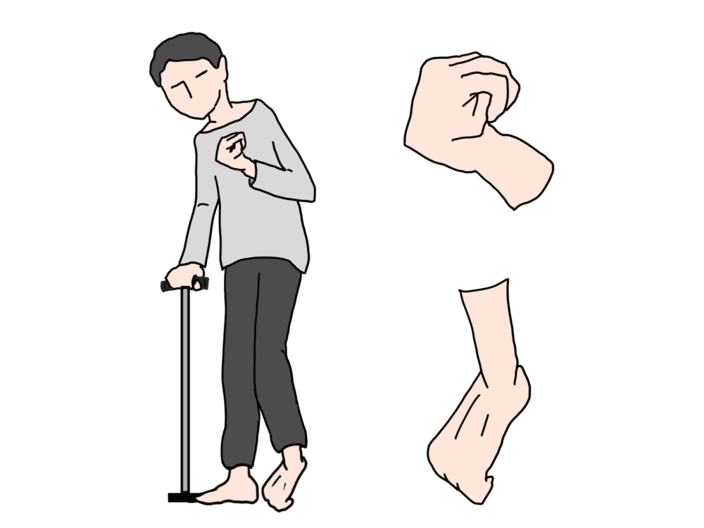 例えば、脳血管疾患では、立ち上がり動作時に足関節の底屈・内反運動を認めることがあるため、裸足の方が足関節の運動を観察しやすくなります。