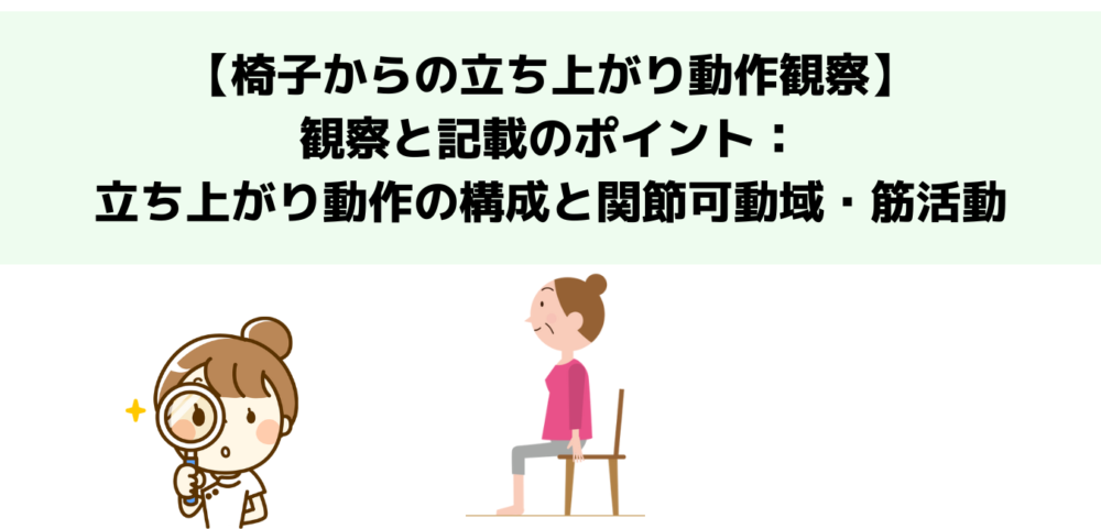 この記事では、椅子からの立ち上がり動作観察について、観察のポイントから書き方まで実践できるように解説します。